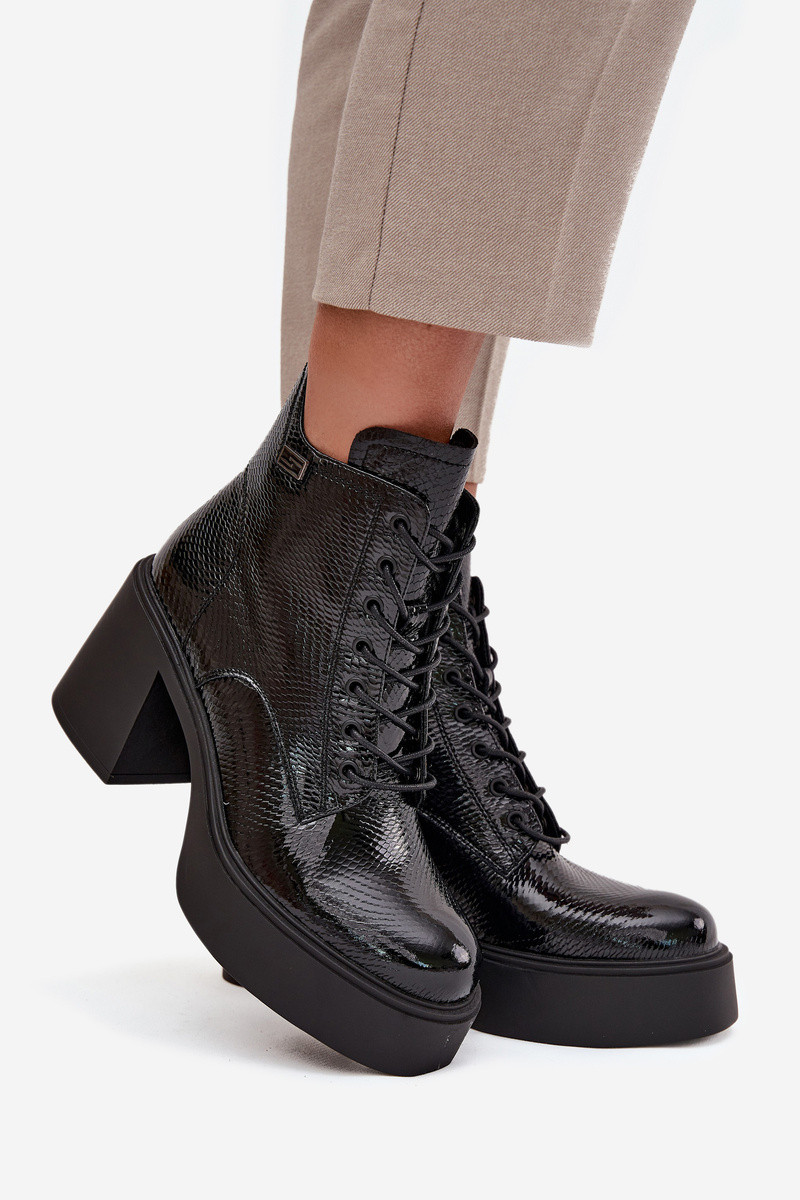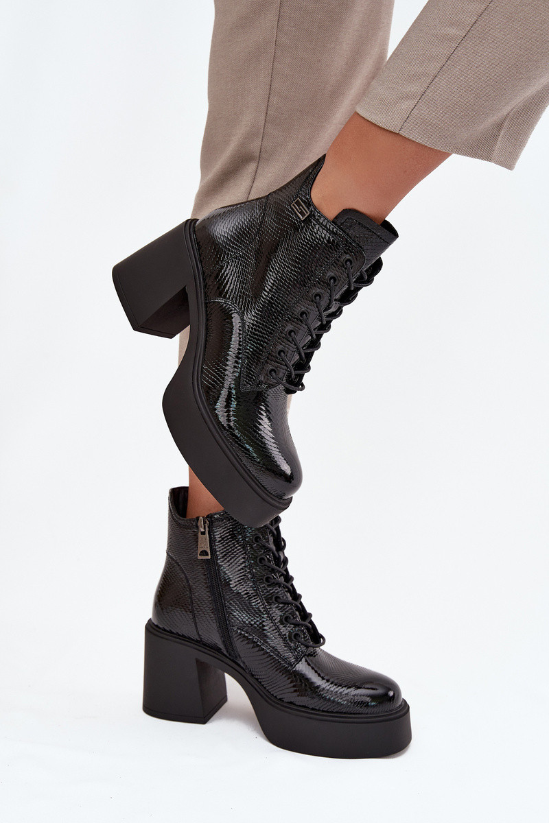 Leren platformlaarzen voor vrouwen Vinceza 66817 met lak effect in zwart
