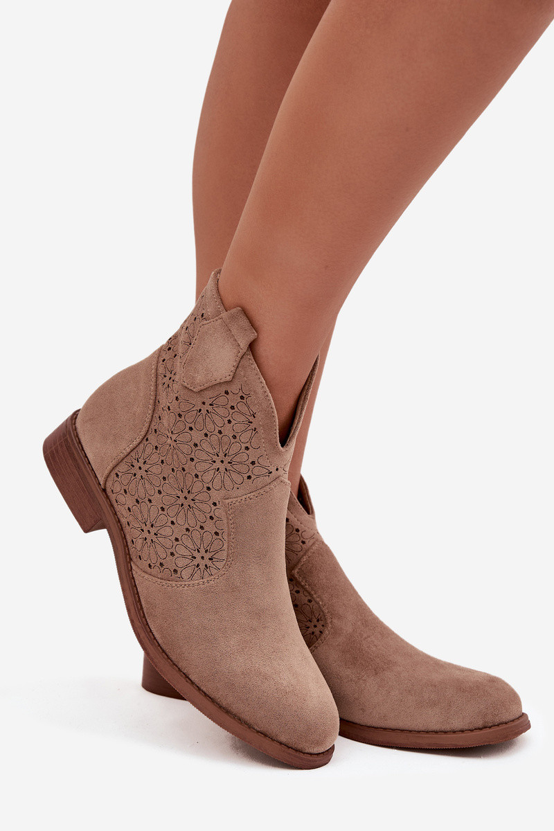 Dames enkellaarsjes met brede hakken S.Barski HY52-532 zandkleur