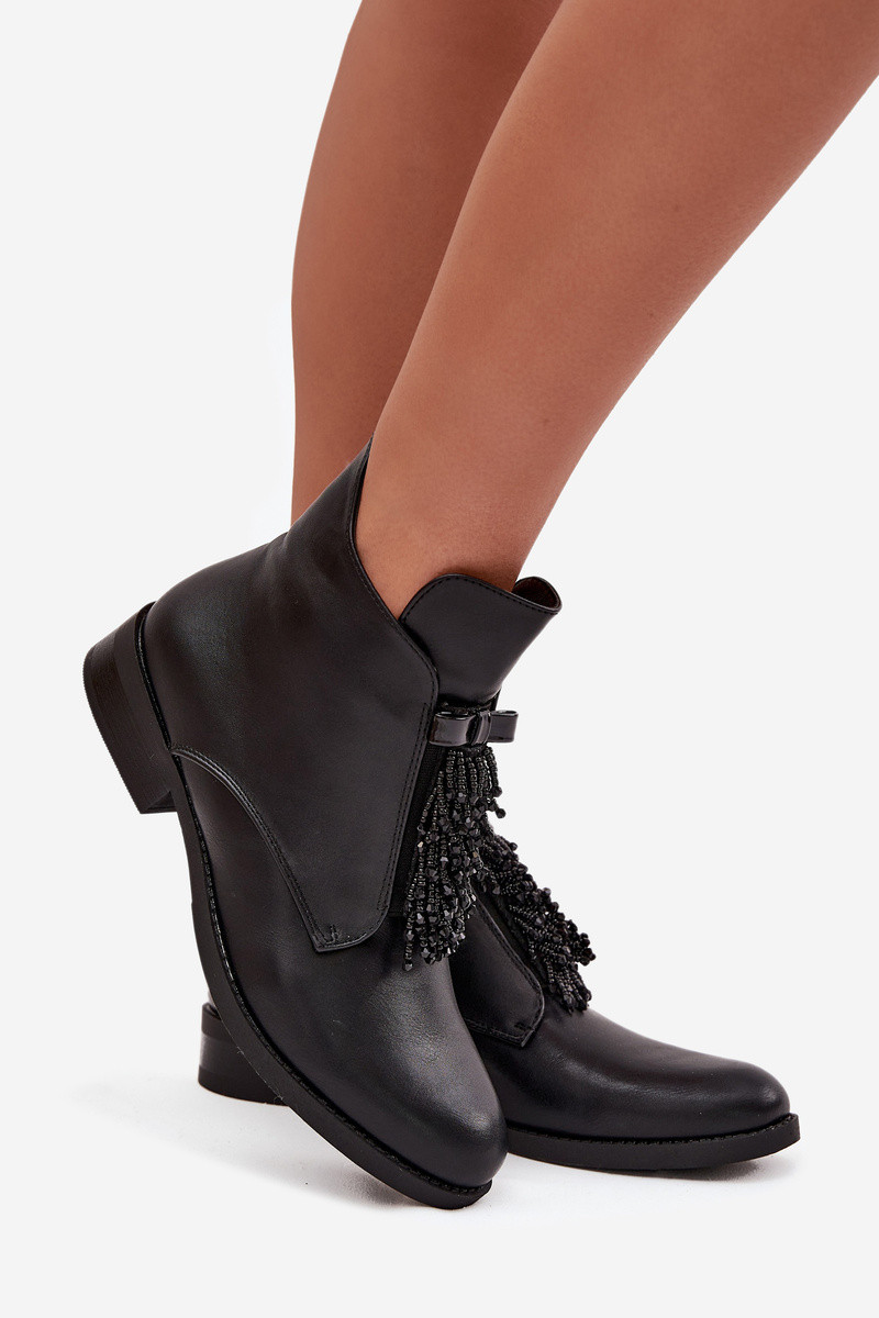 Warme dames enkellaarsjes met brede hakken S.Barski HY42-713 zwart