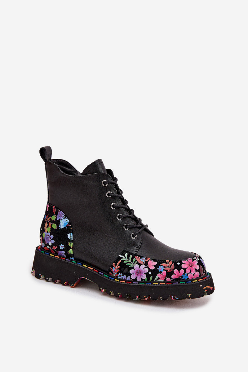 Leren warme dames enkellaarsjes met bloemetjes Artiker 57C0180 zwart