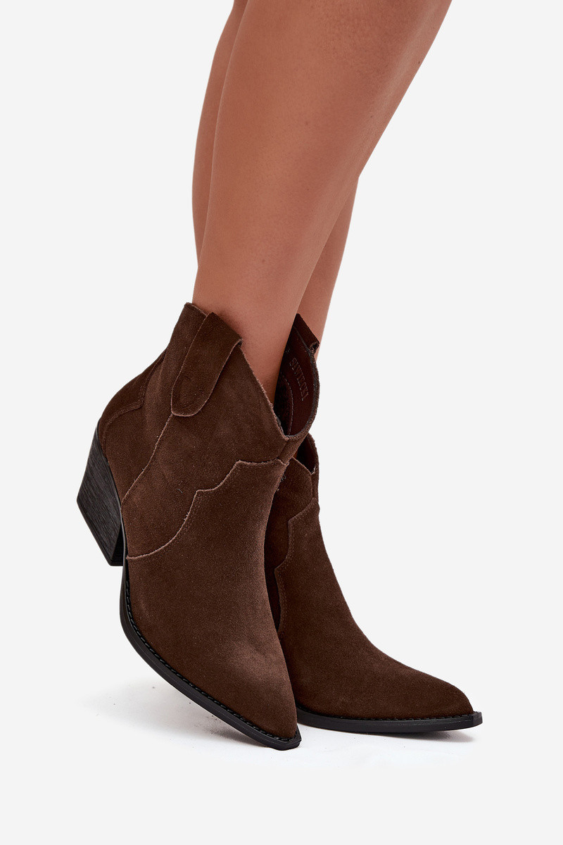 Instap cowboystijl dames enkellaarsjes van natuurlijk suede Beretta chocolade