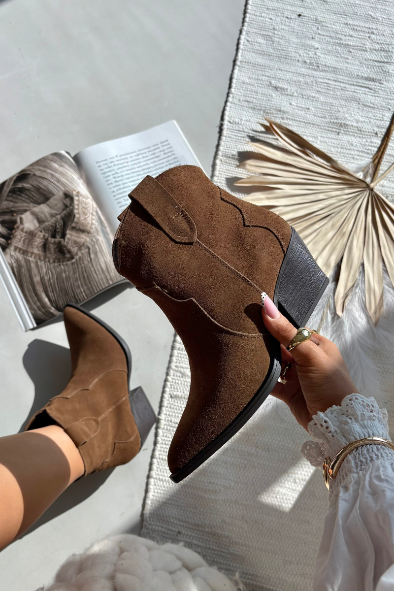 Instap cowboystijl dames enkellaarsjes van natuurlijk suede Beretta bruin