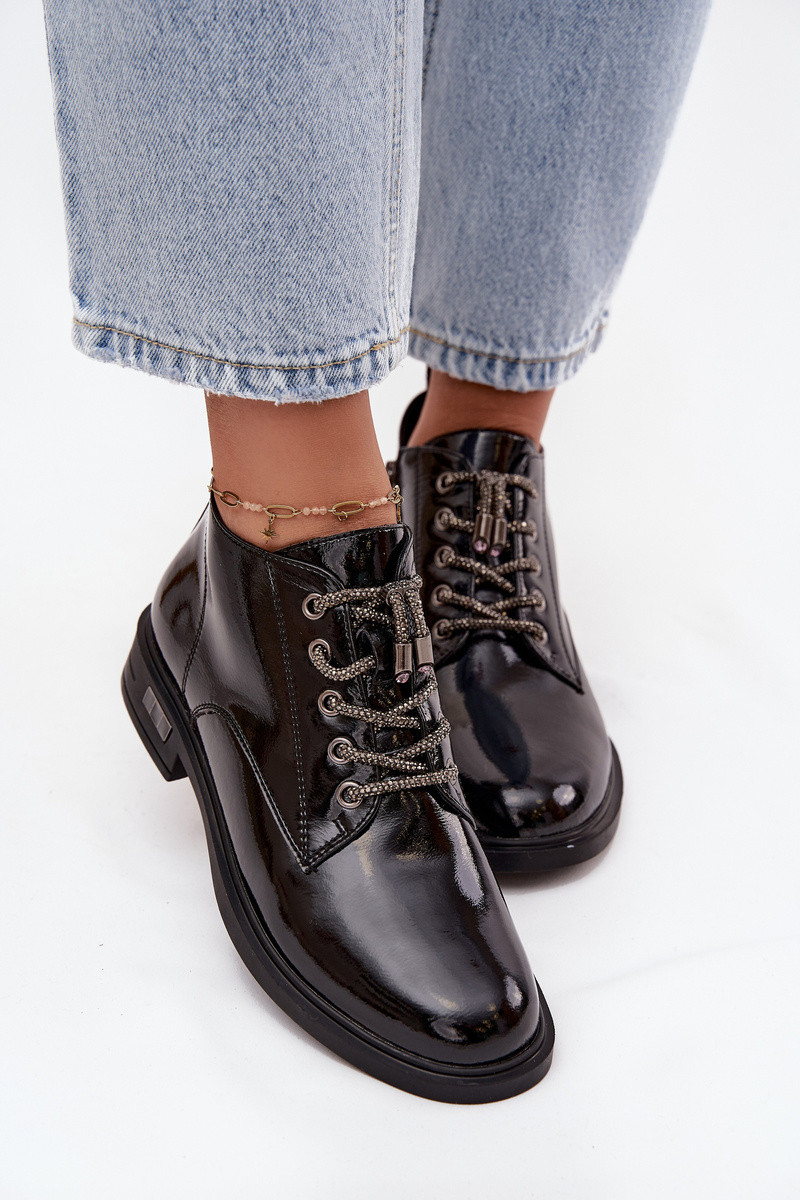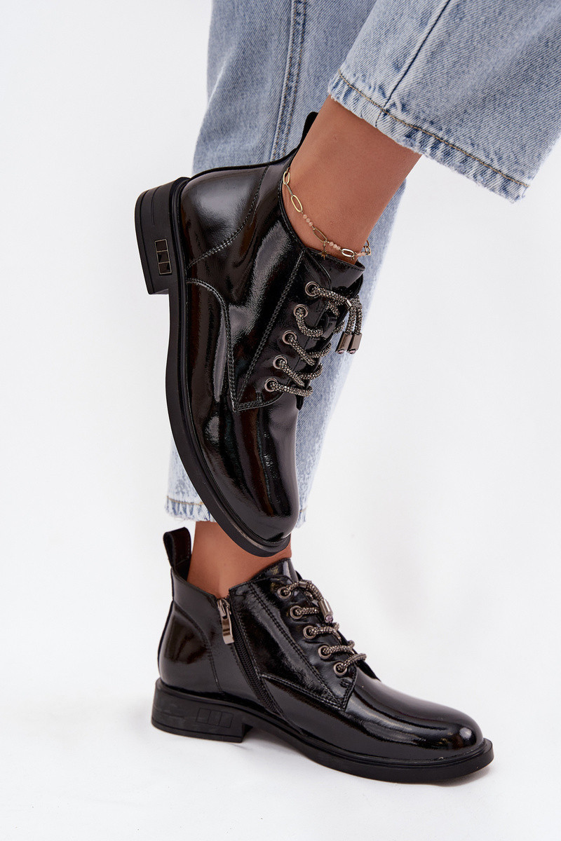 Leer met lakeffect Dameslaarzen Met sierlijk Vetersluitingm D&A MR52-124 zInart