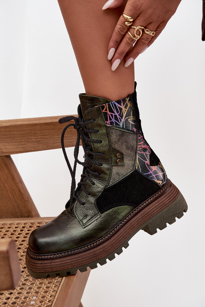 Leer Enkellaarsjes voor Inerknemers Dames met platform Het heeftciejka 07104-09 kaki kleuren