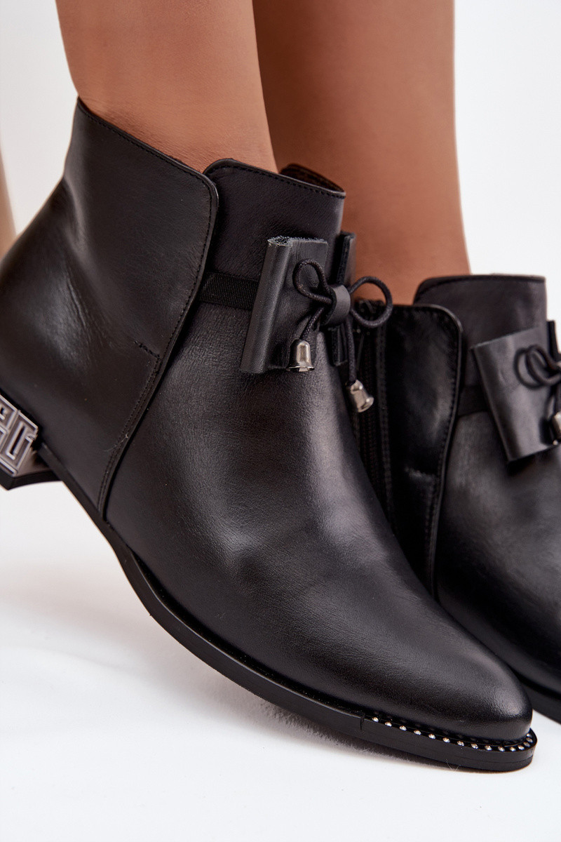 Dames enkellaarsjes van natuurlijk leer met een lage hak Zazoo 1396 zwarte kleur