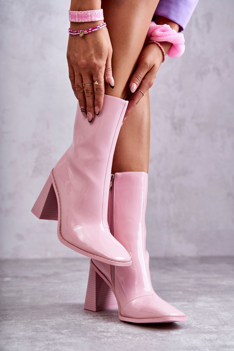 Dames lakleren lange enkellaarsjes roze kleur Tai turirgit