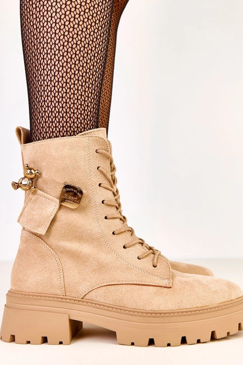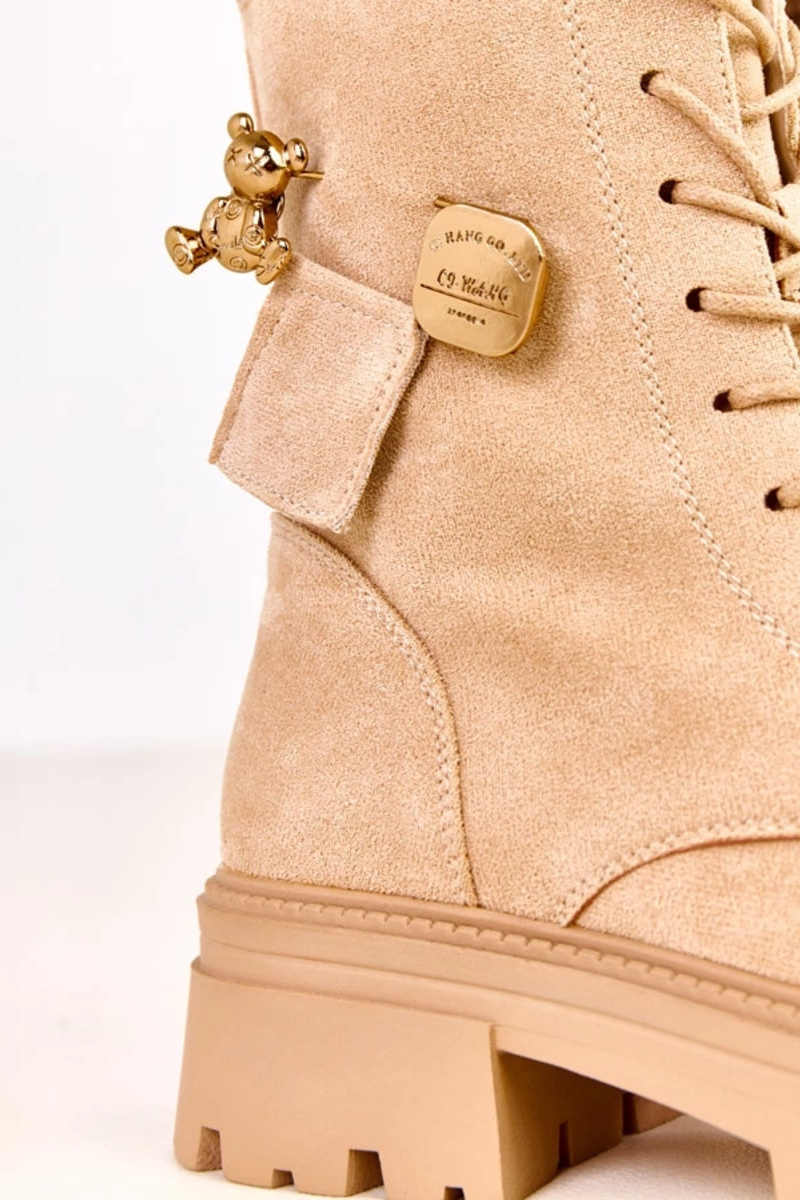 Beige laarzen versierd met een teddybeer en een gesp Hariet