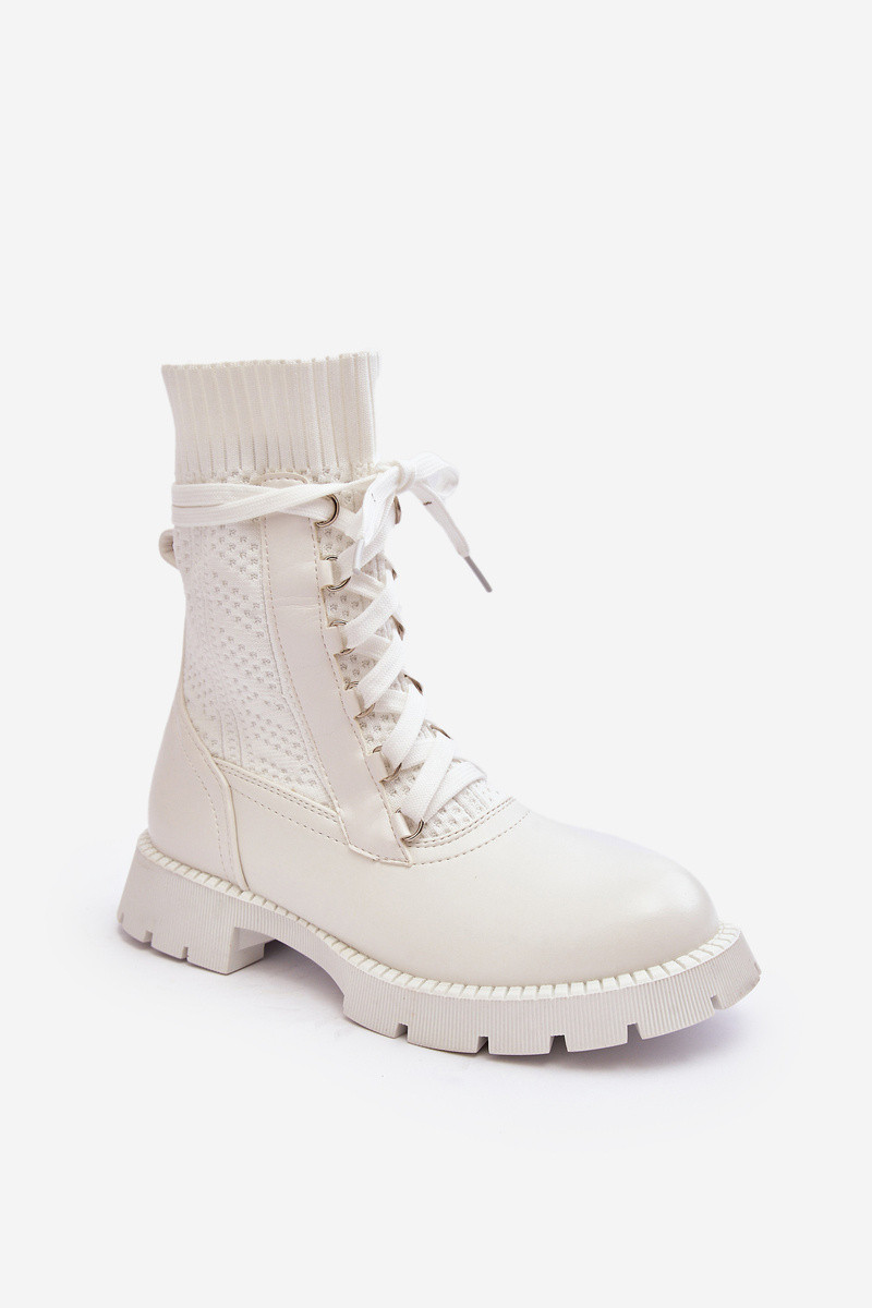 Dames Laarzen met soktype laars met veters Initte kleur Gentiana