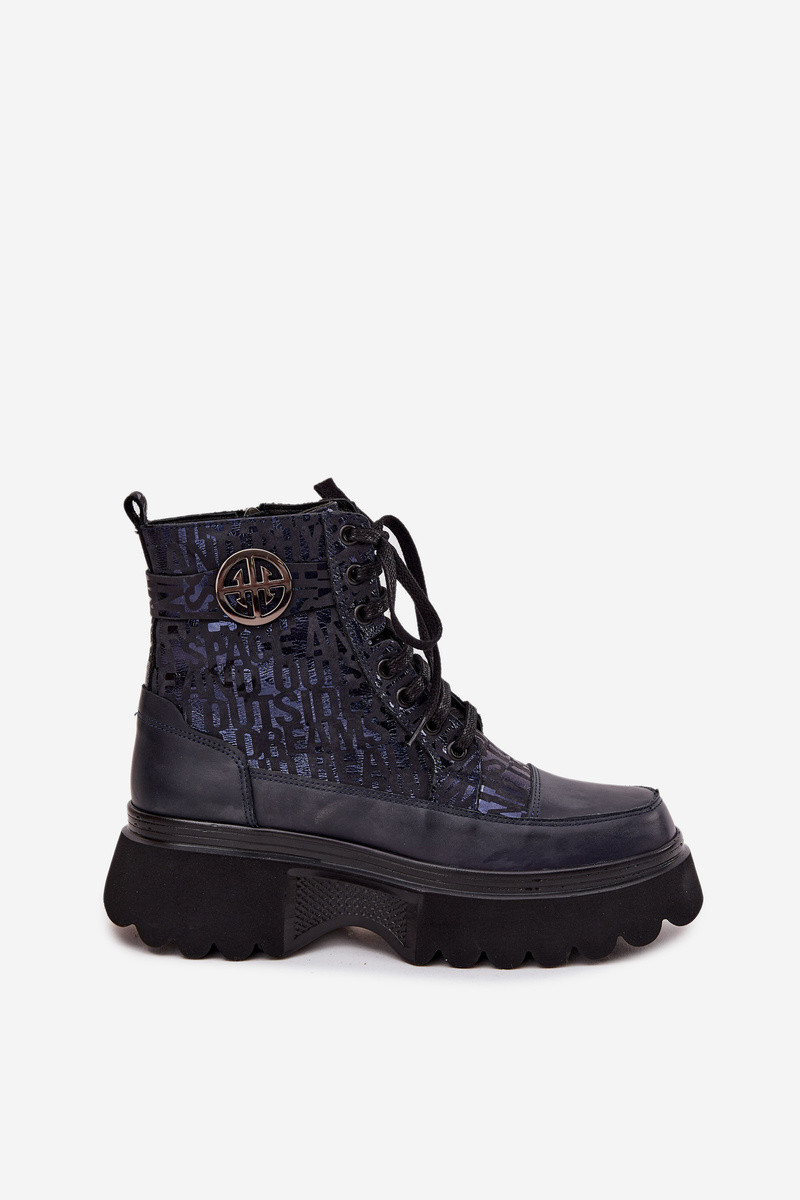 Leer Dameslaarzen met platform met geschriften I Ozdobnym Detalem Artiker 57C2271 donkerblauIn