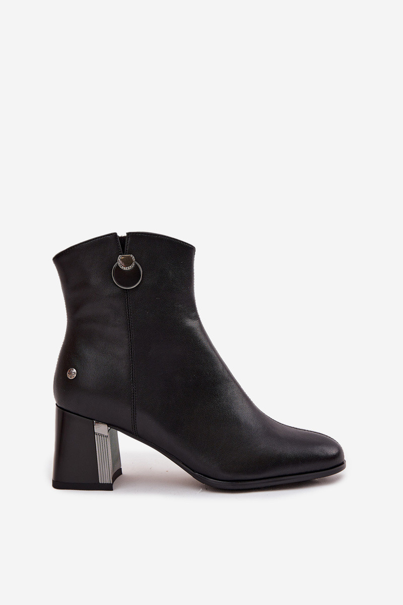 Gevoerde enkellaarsjes van echt leer met hakken Tai turiciejka K7203-04 zwarte kleur