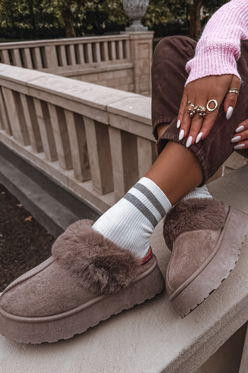 Dames sneeuwlaarzen met platform en bont met borduurwerk zandkleur Querina
