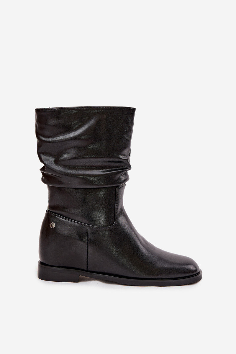 Zwarte leren damesankle boots met rimpels, gevoerd Tai turiciejka K7211-01