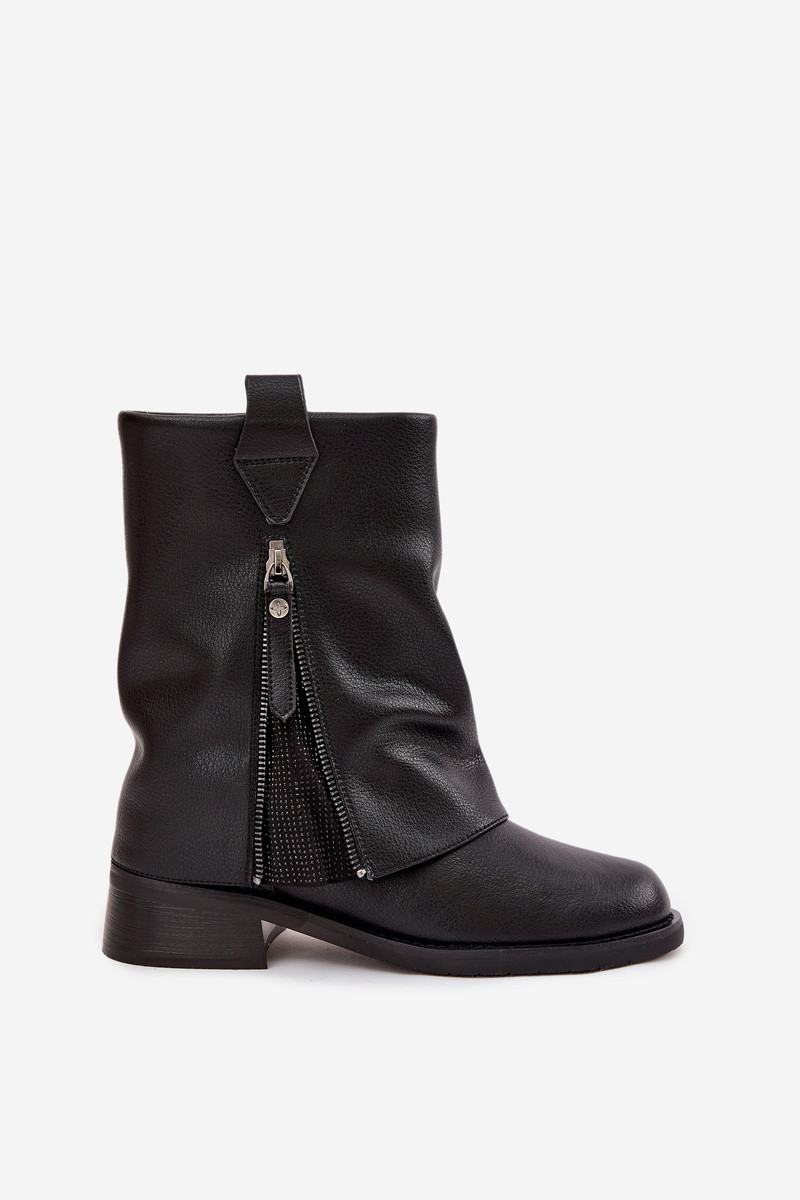 Zwarte leren damesankle boots met ingenaaide enkel en platform Tai turiciejka K7213-01