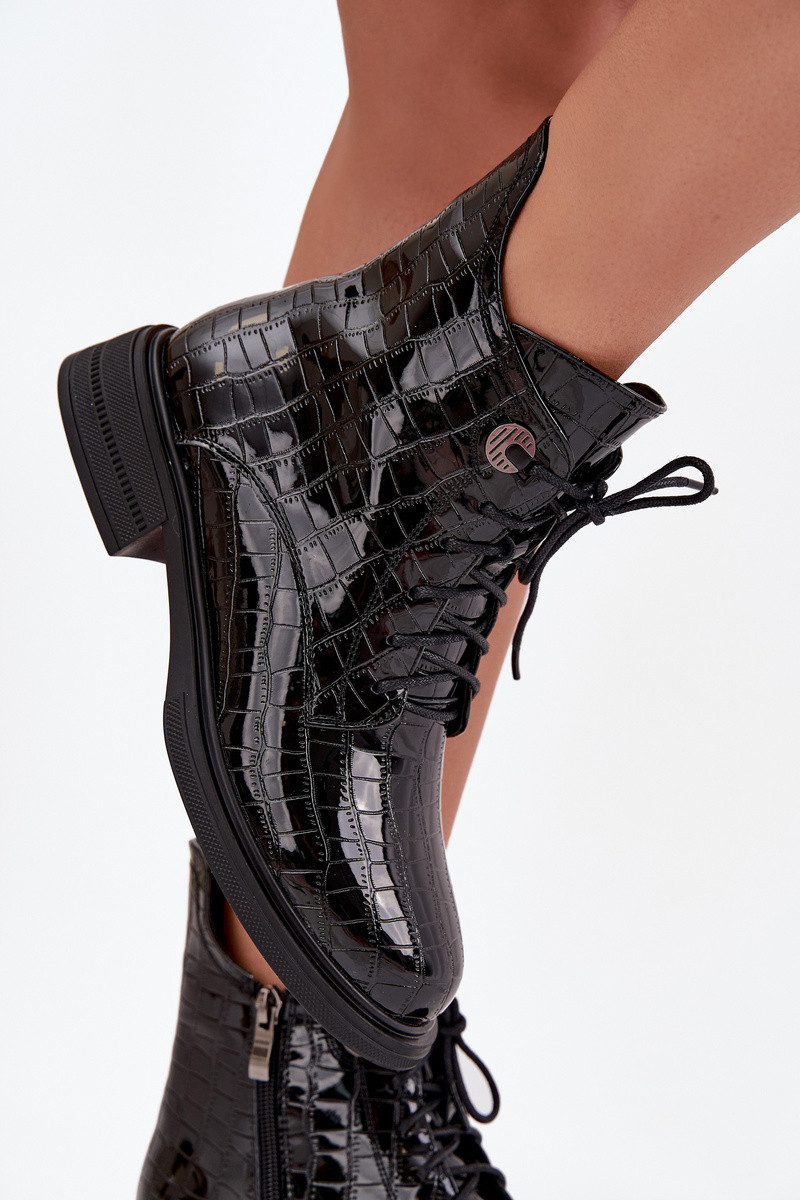 Leer met lakeffect Laarzen Met reliëf opInarmen zInart Juviane