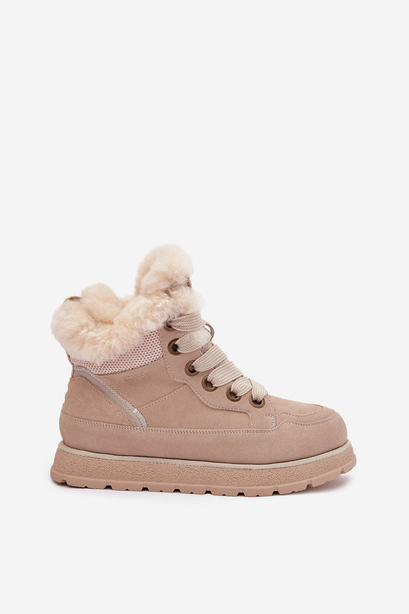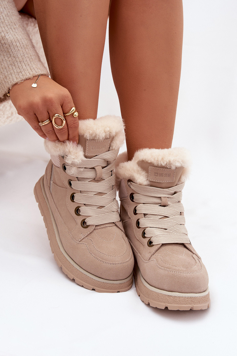 Zandkleurige suède sneeuwlaarzen met platform en bont Big Star SS274371