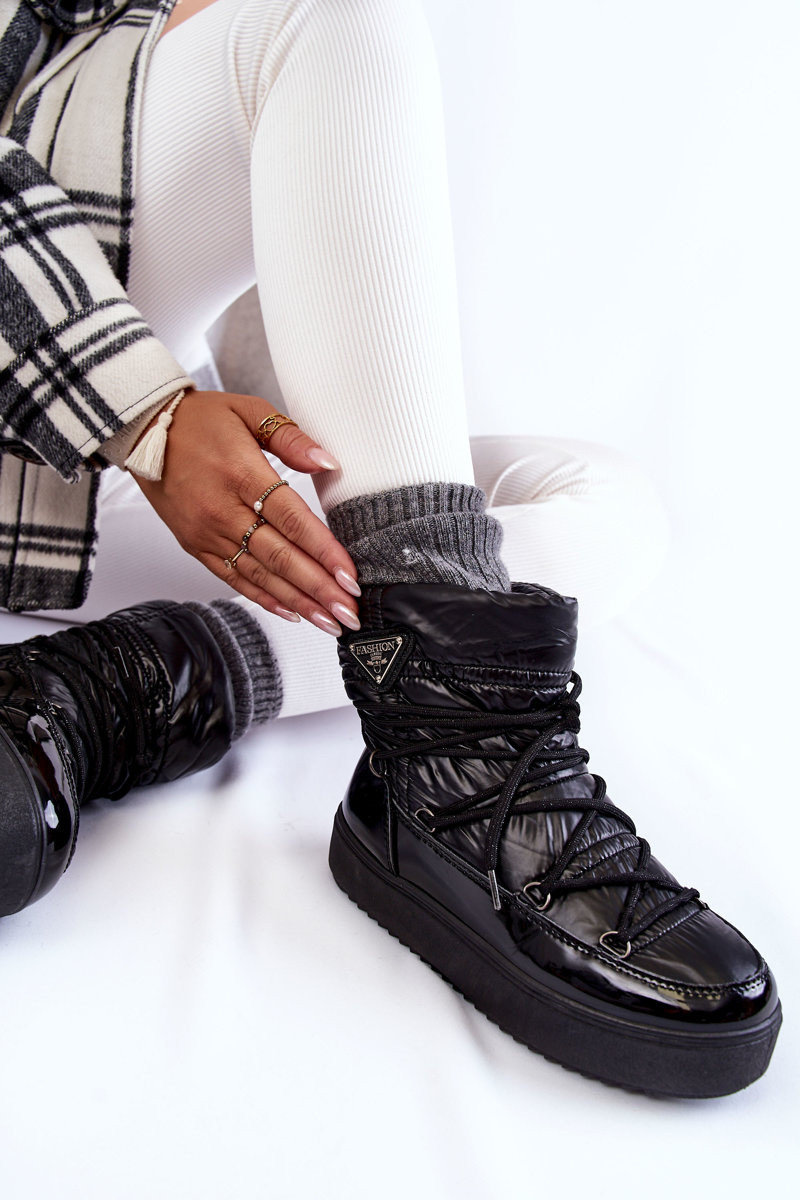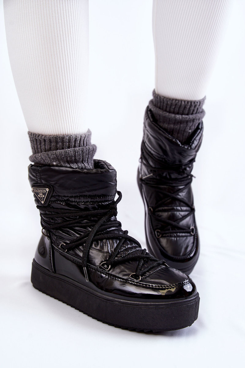 Dames stijlvolle sneeuwlaarzen met veters zwarte kleur Carrios
