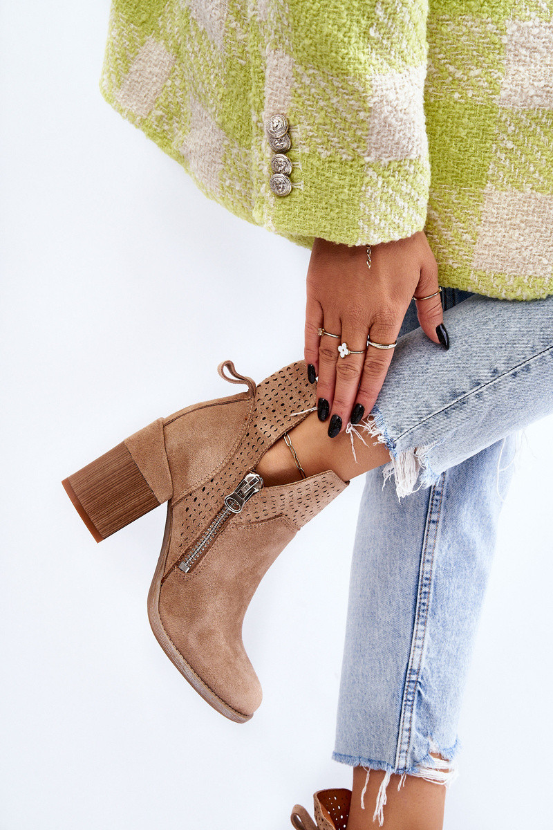 Natuurlijke suède schoenen op zware hakken zandkleur Camden