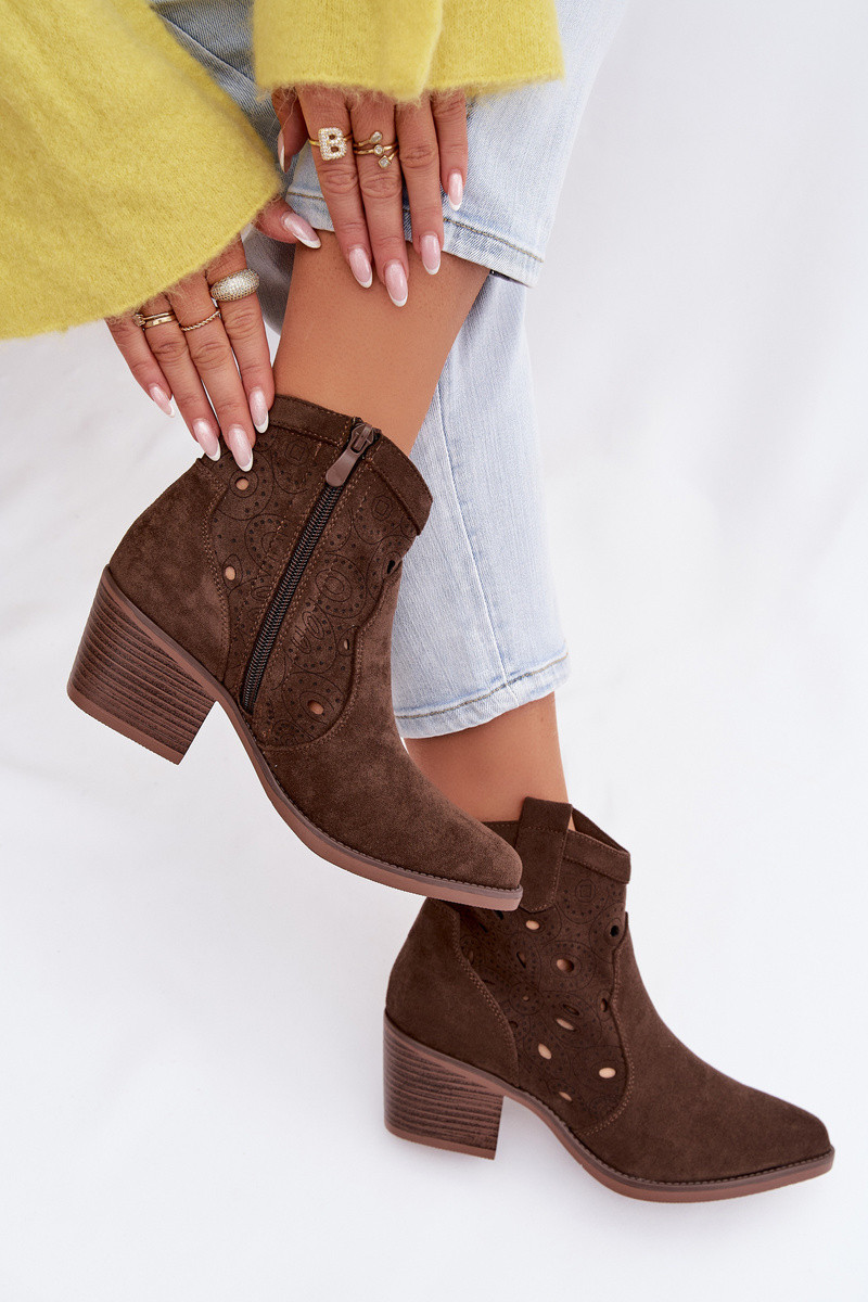 Nolvina cowboy-stijl dames laarzen met perforaties in chocoladebruin
