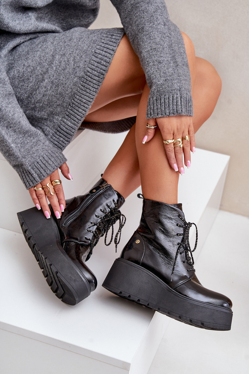 Tai turiciejka 06762-01 leren instaplaarzen met platform zwart