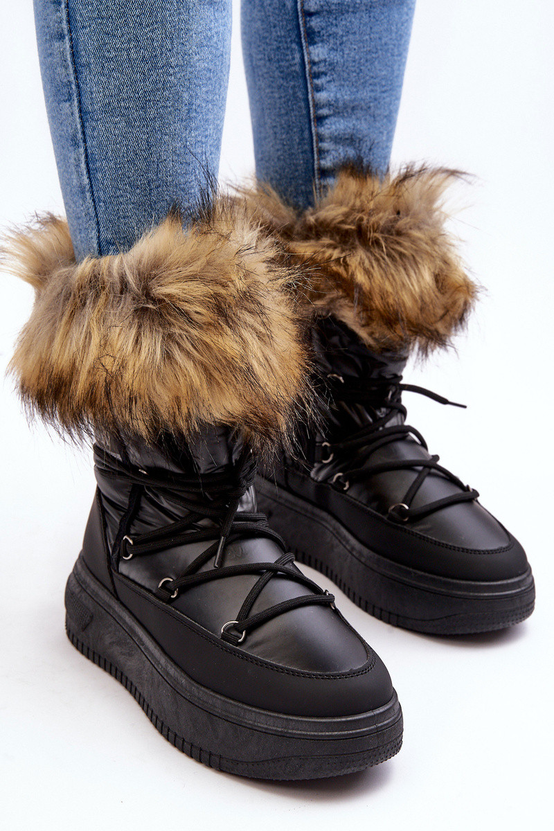 Dames sneeuwlaarzen met bont en plateau zwart Įjungtabilla