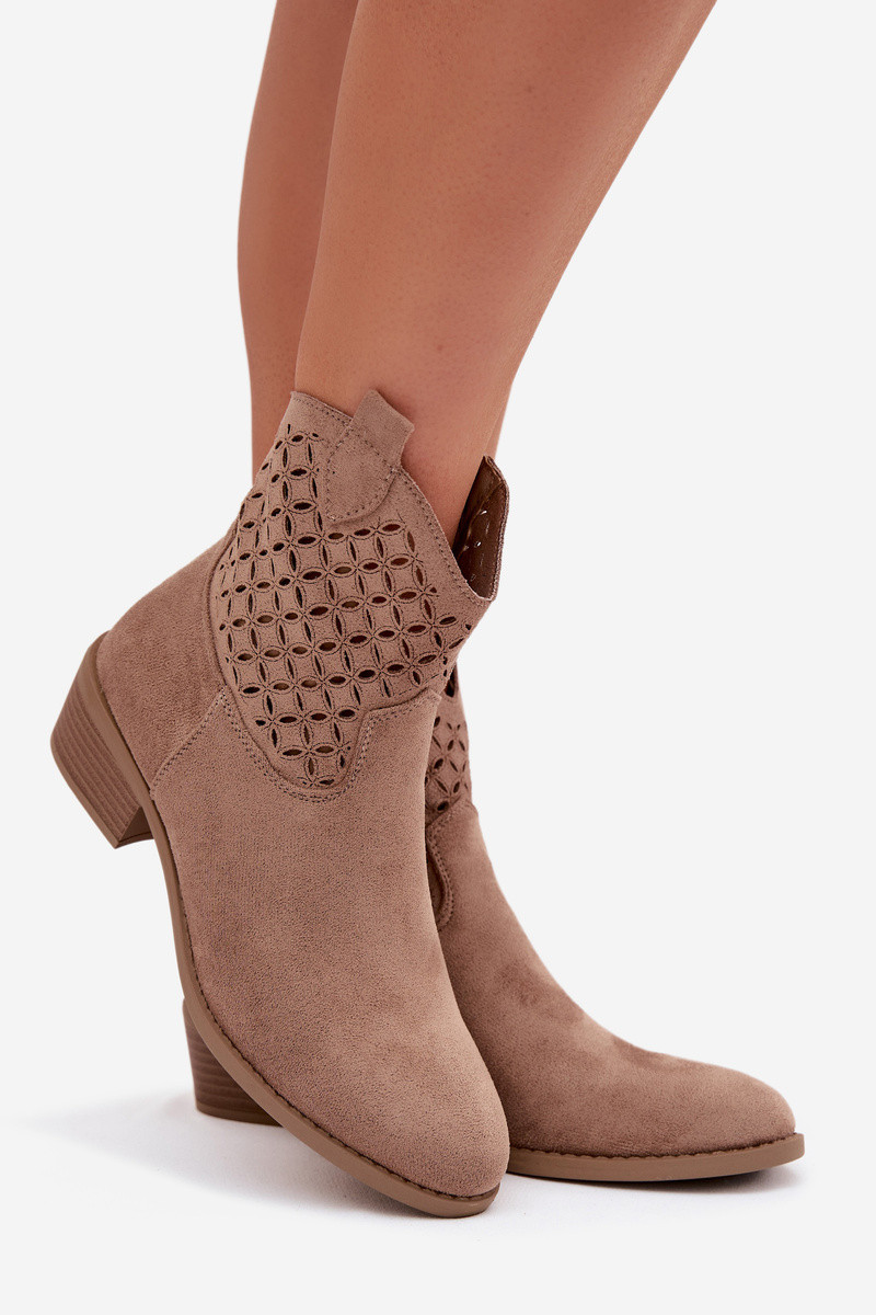 Ażurolaarzen voor vrouwen met hakken in zandkleur Briavine