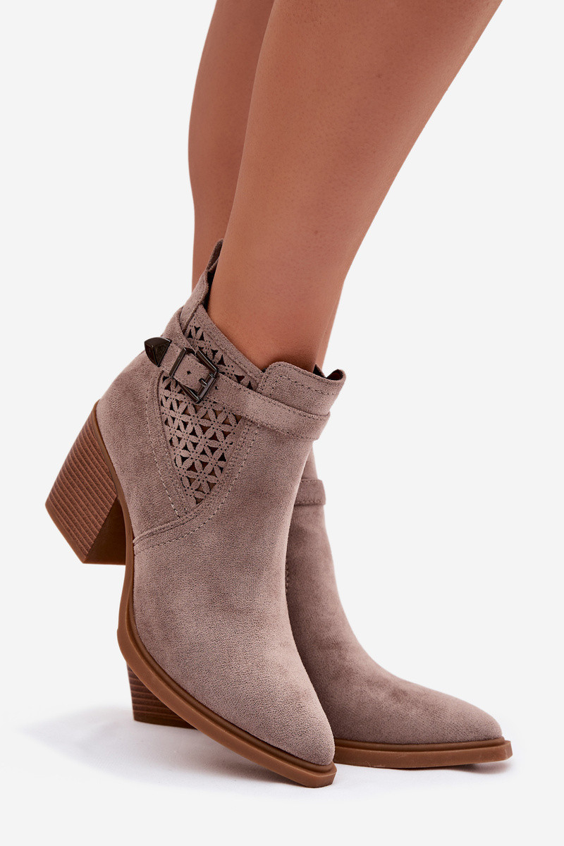 Vrouwen laarzen met ażurol elementen en gesp in zandkleur Deloriah