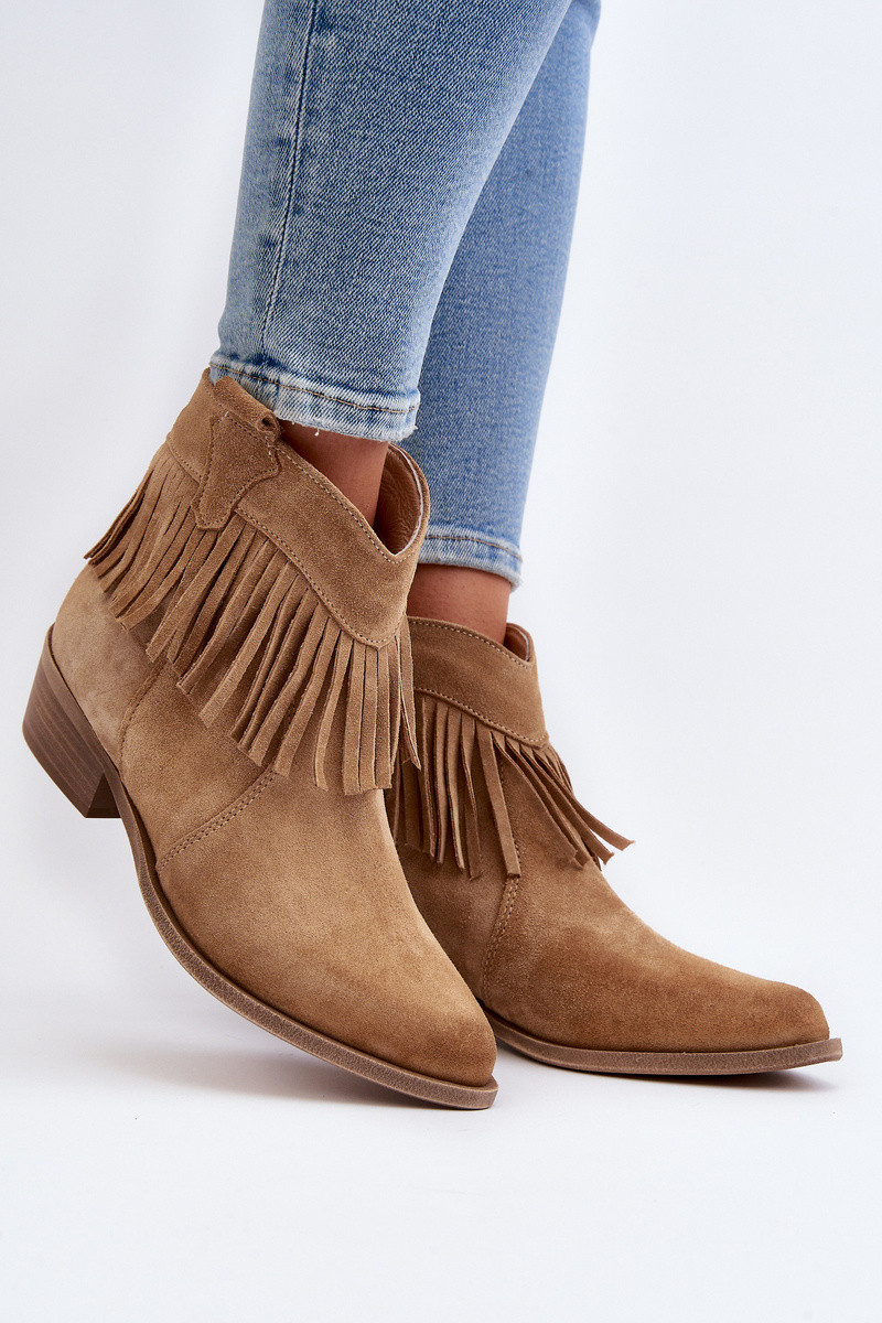 Zazoo 3430 dames suède schoenen met kwastjes zandkleur