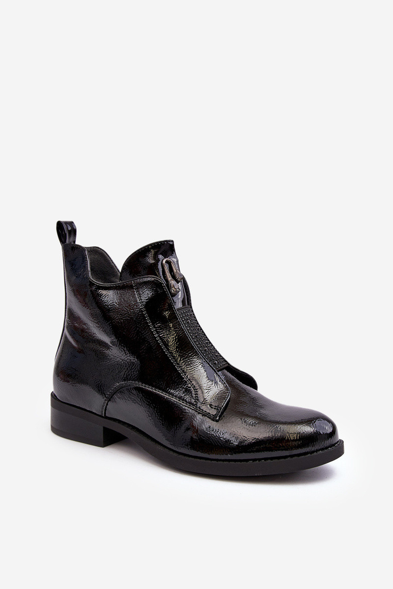 Dames laarzen met lak effect en brede hakken gevoerd zwarte kleur S.Barski HY75-120