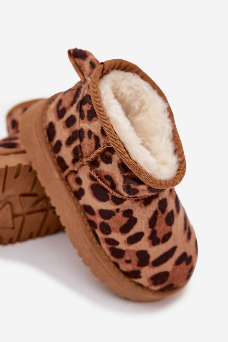 Bruine warme kinder/jongeren sneeuwlaarzen met voering van bont en luipaardprint Mireya