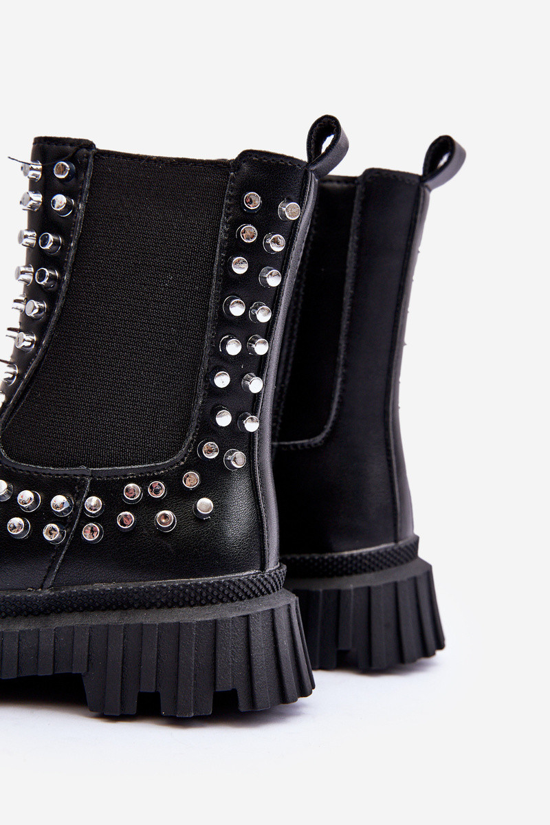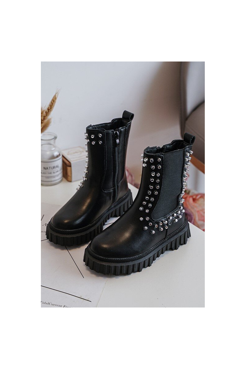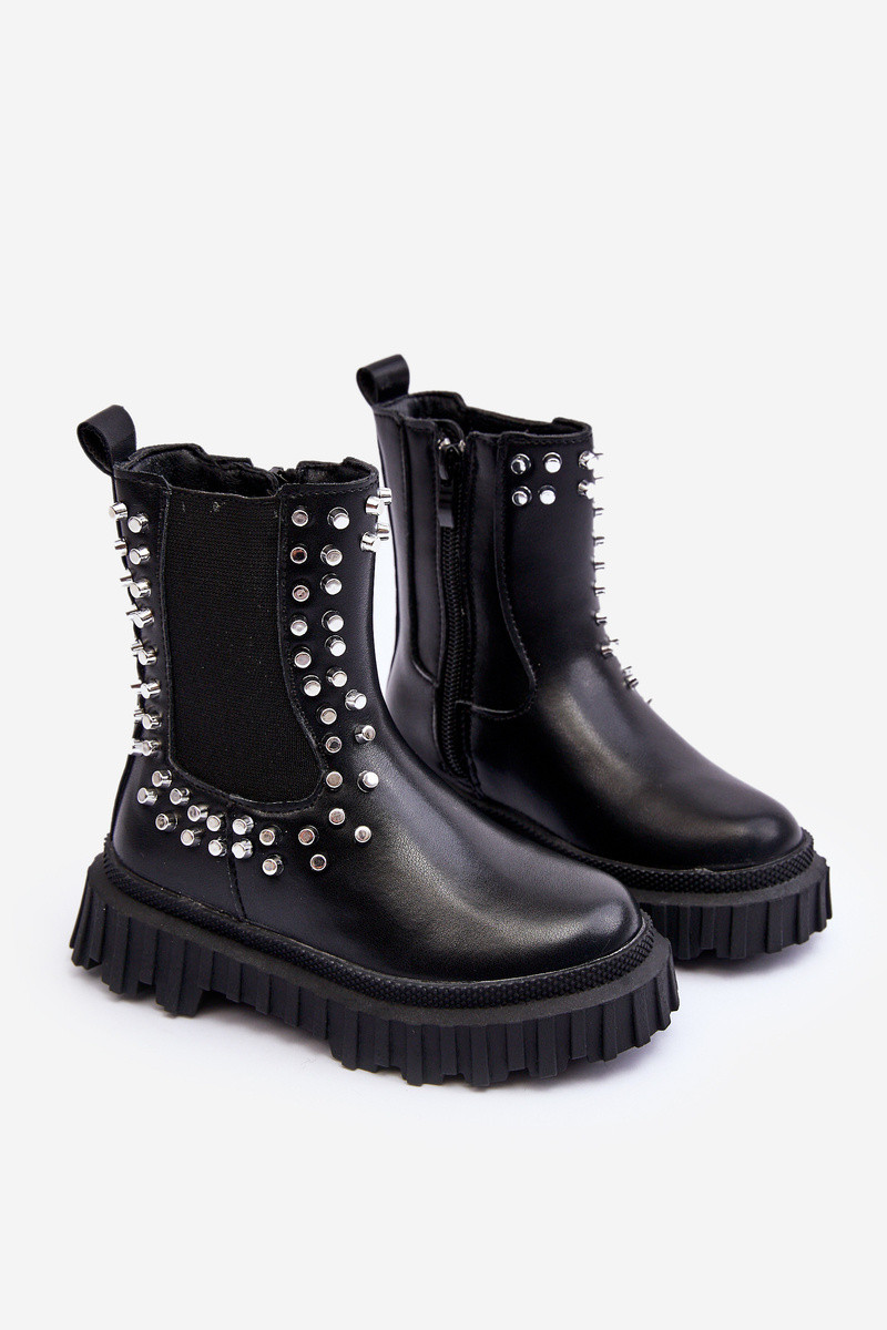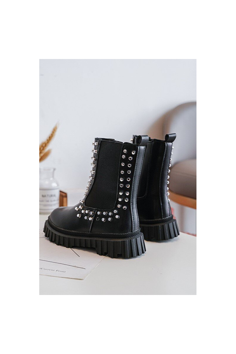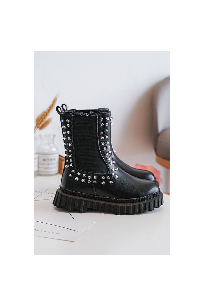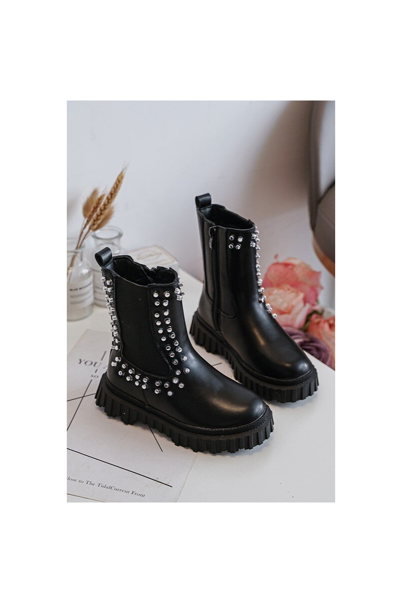 Stijlvolle zwarte kinderlaarsjes Adelie, versierd met bergkristallen
