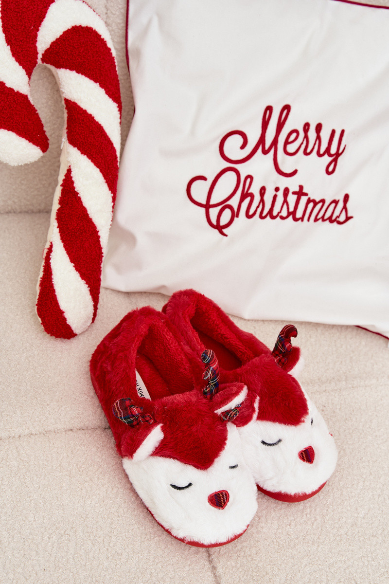 Slippers Kerstmis Dames Met Thema Rendier met bont rood Orsella